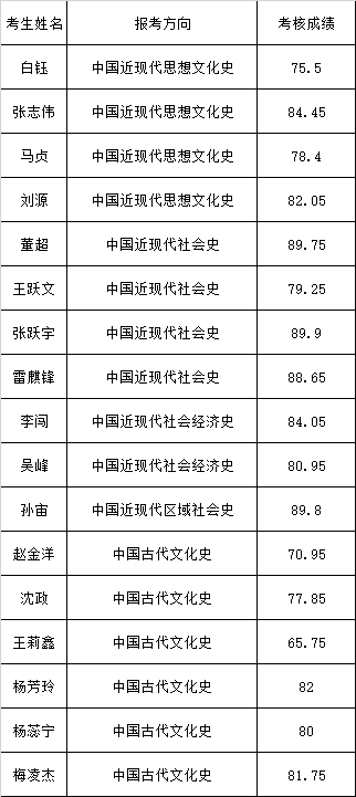 遵照《河北大学博士研究生招生“申请—考核制”实施办法》《河北大学历史学院“申请-考核制”招收博士研究生实施细则》等文件精神,我院于4月16日对申请考生进行学术水平考核和面试考核,现将成绩进行公示: