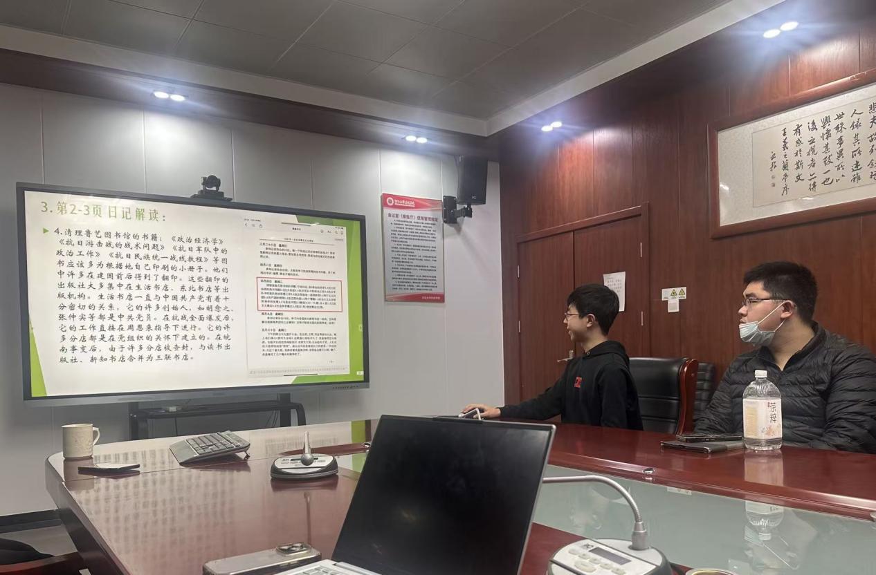 12月21日第三讲由危吴同学对《高鲁日记》进行专题解读,将视野延伸至抗战时期的延安。汇报细致分析了鲁艺学生的日常生活、思想政治教育的深刻影响,以及整风运动前后日记内容从个人抒怀向工作记述的微妙转变。与会师生共同探讨了在强势政治话语下日记的史料价值问题,认识到即使文本受到时代影响,其书写方式本身也记录着知识分子的主动认知与复杂心路,为了解革命集体中的个体认同提供了珍贵素材。