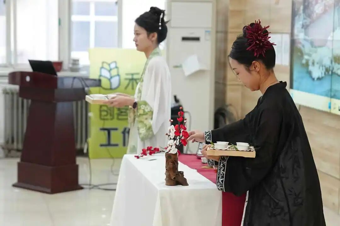 座谈会尾声,莲池国学社的同学们带来了精彩的传统文化展演。舞蹈《北国江南采莲曲》以灵动舞姿演绎古典意境,“千年传承,岁月沉香”新年传统茶艺表演则在盏盏清茶中氤氲出静谧悠远的东方美学。表演将座谈会的气氛推向高潮,也直观展示了社团在艺术实践与文化传播方面的丰硕成果。